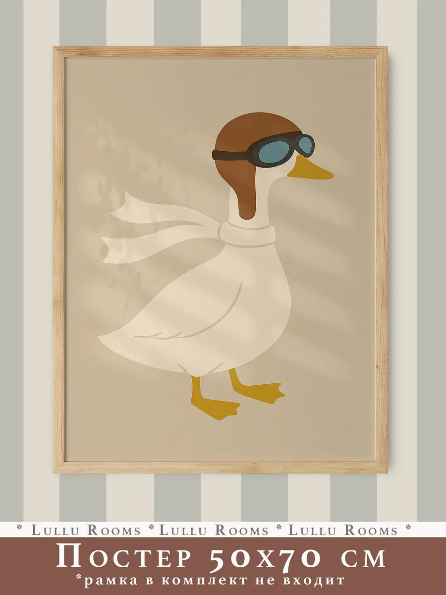 Превратите детскую комнату в увлекательный мир приключений с помощью этого потрясающего ретро-постера от Lullu Rooms! Его размер 50х70 см позволит ему стать центральным элементом декора, приковывая взгляды и наполняя пространство неповторимой атмосферой. Напечатанный на фотобумаге премиального качества 220 г/м2, постер порадует вас своей насыщенностью красок и четкостью изображения. Теплые бежевые, коричневые и бордовые тона создают уютную и комфортную обстановку, идеально подходящую для детской комнаты. Представьте, как ваш малыш с восторгом будет рассматривать этот стильный постер, погружаясь в мир фантазий и придумывая собственные истории! Он станет не просто украшением, а настоящим спутником в играх и мечтах. Подарите своему ребенку кусочек волшебства с этим очаровательным ретро-постером! Гусь-пилот, животные на спорте, ретро-самолет Декор Комнаты Малыша в Стиле Pinterest – Минимализм, Сканди, Бохо – Идеальный Подарок