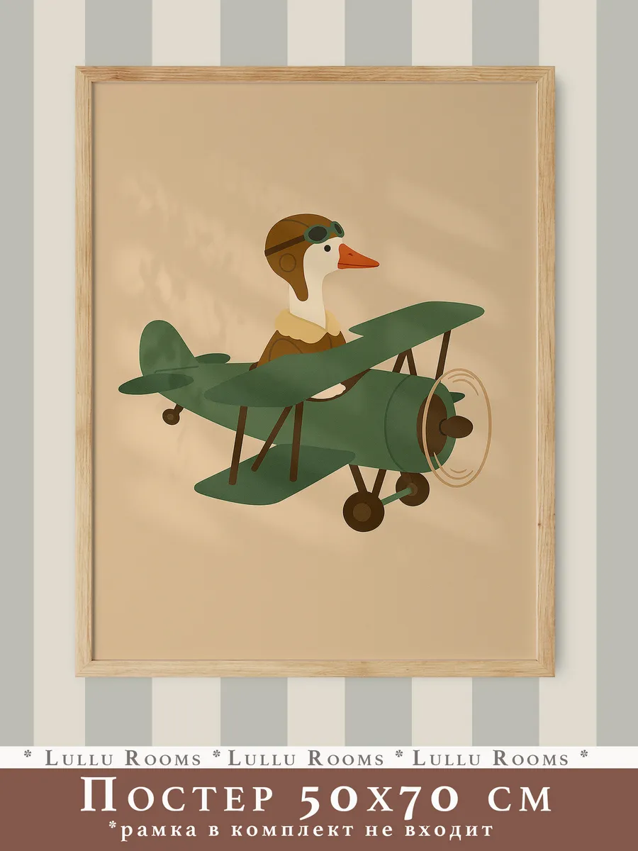 Превратите детскую комнату в увлекательный мир приключений с помощью этого потрясающего ретро-постера от Lullu Rooms! Его размер 50х70 см позволит ему стать центральным элементом декора, приковывая взгляды и наполняя пространство неповторимой атмосферой. Напечатанный на фотобумаге премиального качества 220 г/м2, постер порадует вас своей насыщенностью красок и четкостью изображения. Теплые бежевые, коричневые и бордовые тона создают уютную и комфортную обстановку, идеально подходящую для детской комнаты. Представьте, как ваш малыш с восторгом будет рассматривать этот стильный постер, погружаясь в мир фантазий и придумывая собственные истории! Он станет не просто украшением, а настоящим спутником в играх и мечтах. Подарите своему ребенку кусочек волшебства с этим очаровательным ретро-постером! Гусь-пилот, животные на спорте, ретро-самолет Декор Комнаты Малыша в Стиле Pinterest – Минимализм, Сканди, Бохо – Идеальный Подарок