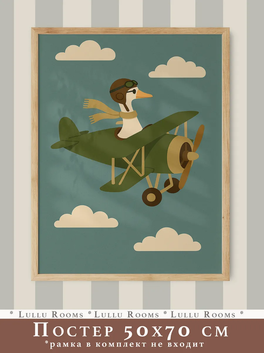 Превратите детскую комнату в увлекательный мир приключений с помощью этого потрясающего ретро-постера от Lullu Rooms! Его размер 50х70 см позволит ему стать центральным элементом декора, приковывая взгляды и наполняя пространство неповторимой атмосферой. Напечатанный на фотобумаге премиального качества 220 г/м2, постер порадует вас своей насыщенностью красок и четкостью изображения. Теплые бежевые, коричневые и бордовые тона создают уютную и комфортную обстановку, идеально подходящую для детской комнаты. Представьте, как ваш малыш с восторгом будет рассматривать этот стильный постер, погружаясь в мир фантазий и придумывая собственные истории! Он станет не просто украшением, а настоящим спутником в играх и мечтах. Подарите своему ребенку кусочек волшебства с этим очаровательным ретро-постером! Гусь-пилот, животные на спорте, ретро-самолет Декор Комнаты Малыша в Стиле Pinterest – Минимализм, Сканди, Бохо – Идеальный Подарок